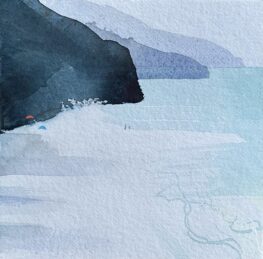 Evening Beach. Water colour. 22 x 22cm
